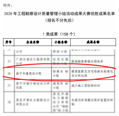 近日,中國勘察設(shè)計協(xié)會公布了2020年工程勘察設(shè)計質(zhì)量管理小組活動成果大賽結(jié)果,我院給排水QC小組申報的《提高裝配式住宅給排水標準化設(shè)計的比例》課題榮獲2020年全國工程勘察設(shè)計質(zhì)量管理小組活動成果大賽I類成果獎。