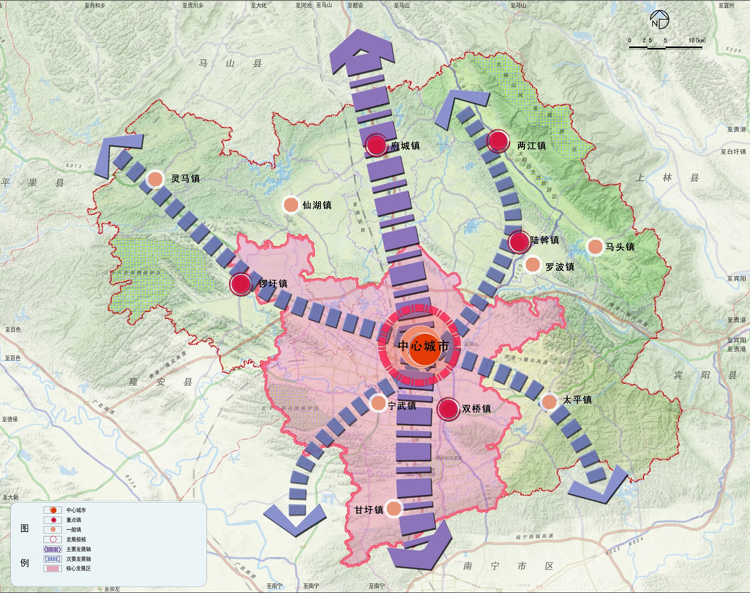 規(guī)劃概況:以科學(xué)發(fā)展觀為指導(dǎo),深入推 進(jìn)新型城鎮(zhèn)化,順應(yīng)武鳴縣經(jīng)濟(jì)發(fā)展新常 態(tài),強(qiáng)化創(chuàng)新驅(qū)動(dòng),推動(dòng)轉(zhuǎn)型發(fā)展,面向 東盟開發(fā)開放,將武鳴縣建設(shè)成為環(huán)境生 態(tài)宜居、經(jīng)濟(jì)多元高效、城鄉(xiāng)融合共進(jìn)、 壯鄉(xiāng)特色鮮明的中國(guó)西部強(qiáng)縣,打造“山 水大武鳴,魅力新壯都”。
