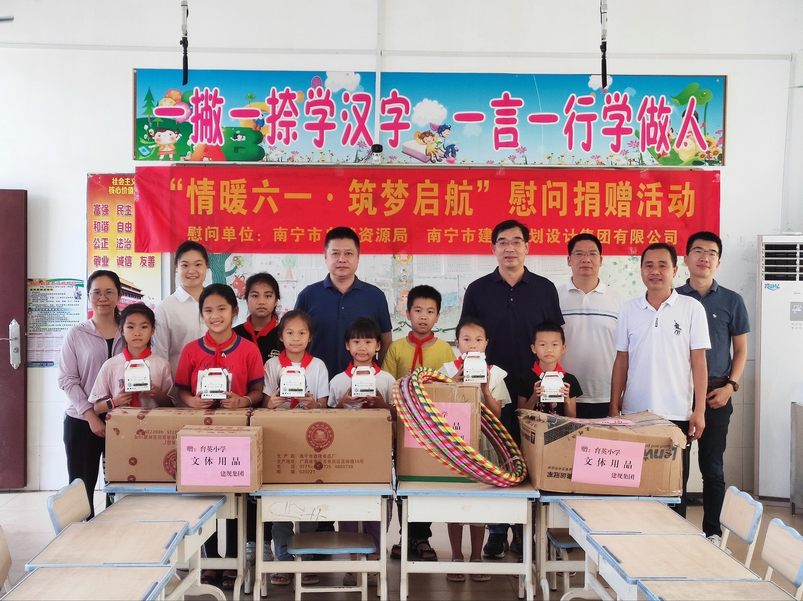 5月30日至31日,值此第72個(gè)國際兒童節(jié)到來之際,南寧市自然資源局副局長、三級(jí)調(diào)研員李伍堅(jiān),局黨組成員、副局長蔣東勇分別帶隊(duì)到集團(tuán)定點(diǎn)幫扶的上林縣大豐鎮(zhèn)擁軍村玉柴希望小學(xué)、隆安縣古潭鄉(xiāng)育英村小學(xué)開展“情暖六一·筑夢啟航”慰問活動(dòng)。