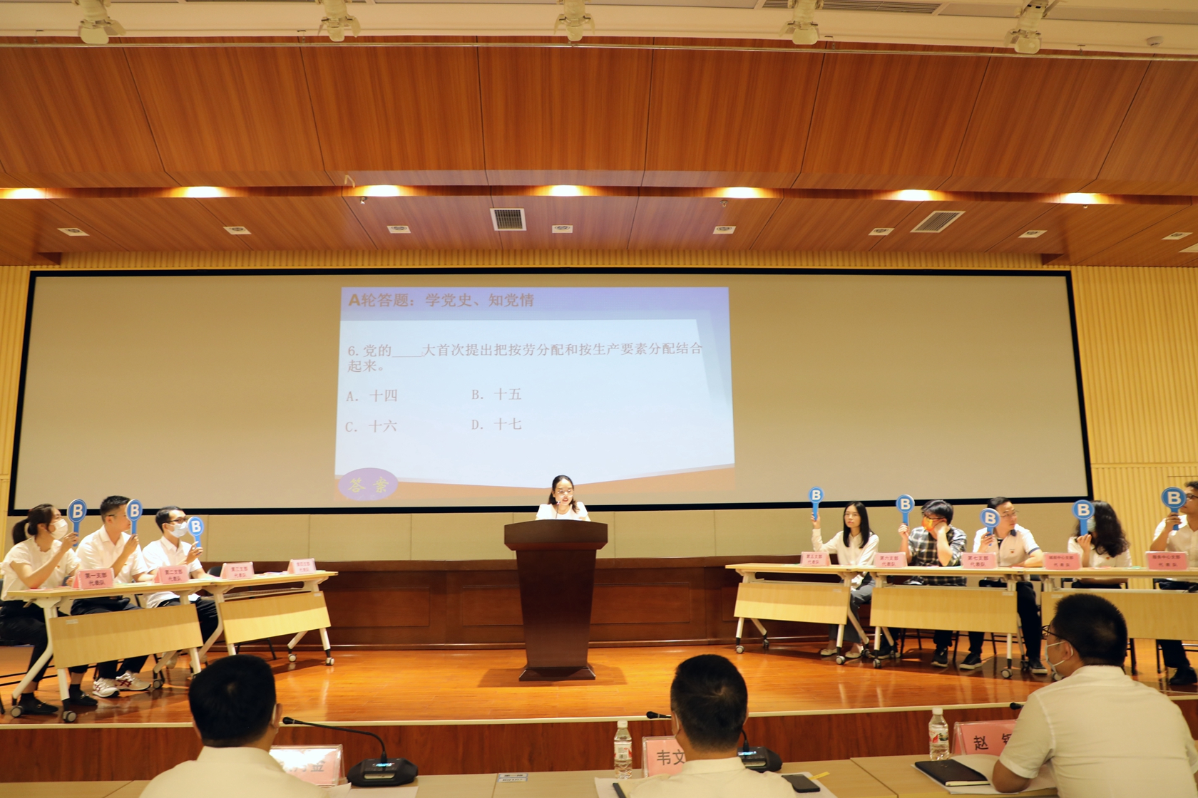 為推動黨員同志學好、用好“學習強國”APP,激發(fā)廣大干部職工學習奮進的熱情,主題黨日活動以“學習強國”挑戰(zhàn)答題競賽拉開帷幕,來自集團黨委下屬9個黨支部的18支代表隊(共計54名選手)參與競賽。本次答題競賽采用淘汰賽制,共分為“學黨史、知黨情”“感黨恩、跟黨走”“悟思想、強信念”三輪答題環(huán)節(jié),題目緊緊圍繞“學習強國”平臺應知應會基本知識及其他知識點進行現(xiàn)場答題。