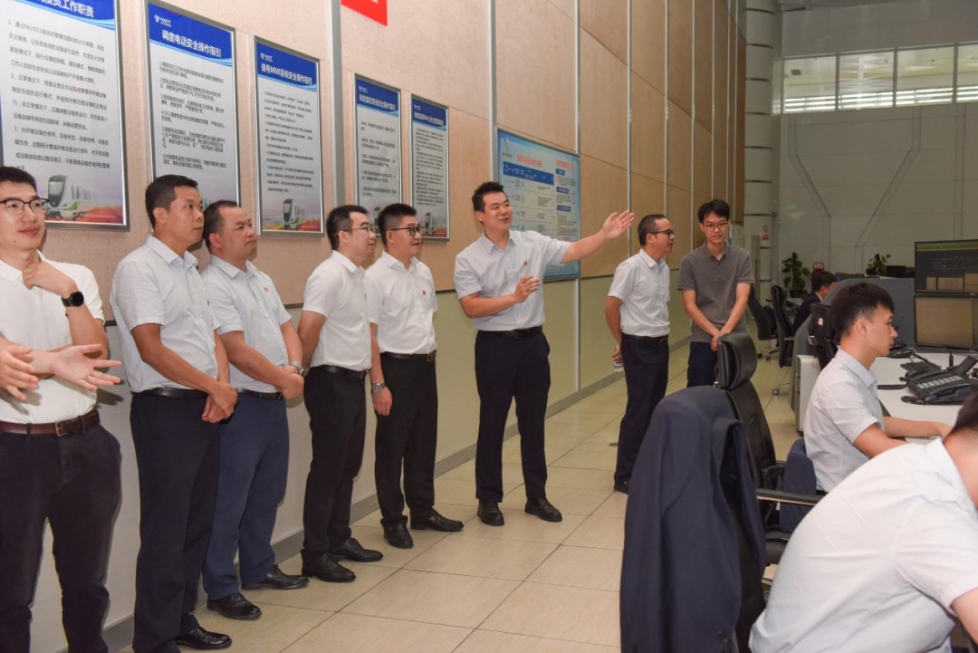 在維修中心四支部的帶領(lǐng)下,雙方共同參觀了南寧軌道交通集團(tuán)的調(diào)度指揮大廳,走進(jìn)南寧地鐵運(yùn)營的“中樞大腦”,近距離接觸地鐵安全運(yùn)行的“幕后英雄”??吹焦ぷ魅藛T正緊張有序地通過監(jiān)控大屏關(guān)注著線上的車輛、信號、供電、線路和客流情況,講解員詳細(xì)地介紹了軌道列車運(yùn)行監(jiān)控及調(diào)度保障行車安全等內(nèi)容,讓綜合二支部黨員對聯(lián)盟企業(yè)的主營業(yè)務(wù)有了更加直觀生動的了解。