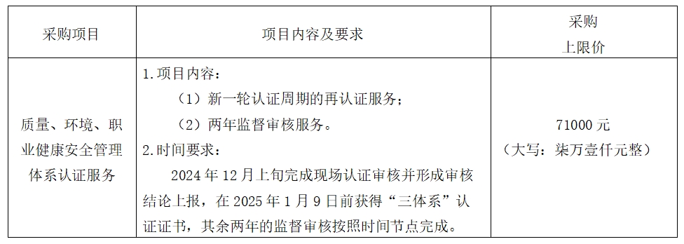 為進一步提升企業(yè)管理水平,確保企業(yè)在質(zhì)量、環(huán)境和職業(yè)健康安全方面符合相關(guān)標(biāo)準(zhǔn)要求,南寧市建筑規(guī)劃設(shè)計集團有限公司決定就本公司質(zhì)量、環(huán)境、職業(yè)健康安全管理體系認(rèn)證服務(wù)項目擬采用公開詢比方式擇優(yōu)選定供應(yīng)商,歡迎符合資格條件的供應(yīng)商前來參加。